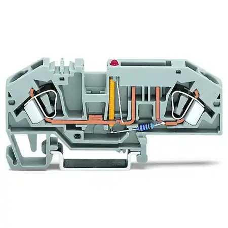 2-conductor fuse terminal block; for automotive blade-style fuses; with test option; with blown fuse indication by LED; 24 V; for DIN-rail 35 x 15 and 35 x 7.5; 6 mm²; CAGE CLAMP®; 6,00 mm²; gray Wago Livrare gratuită