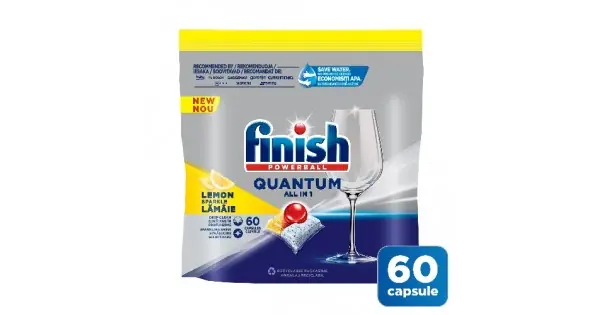 Detergent capsule pentru masina de spalat vase Finish Quantum All in 1 Lemon, 60 spalari Plată sigură