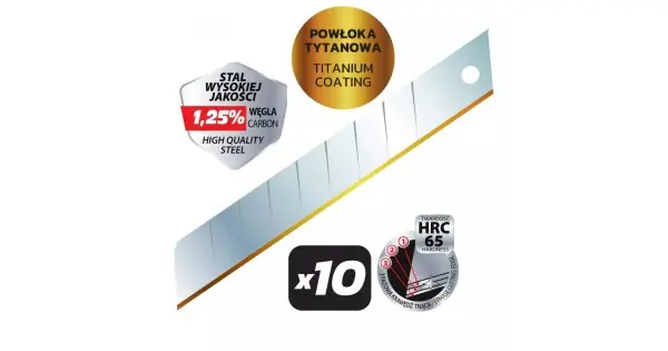 Material: otel HRC65; latime: 18 mm; grosime: 0,5 mm; muchie de taiere triplu sanfrenata cu acoperire de titan; set: 10 buc.CARACTERISTICI:Material: HRC65 + otel TiNTip: Lame de schimbSerie: DEDRANumarul este inclus: 10Culoare: ArgintLatimea lamei [mm]: 18Grosimea lamei [mm]: 0.5Lama sparta: DANumarul de segmente: 8