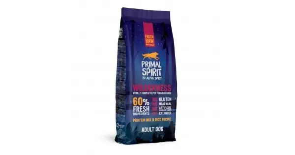 Hrana uscată Premium presată la rece pentru câine Primal Spirit, Wilderness, cu 60% carne de porc, pui și pește, 12 kg: Cheia pentru Nutriție și Fericirea Patrupedului Tău