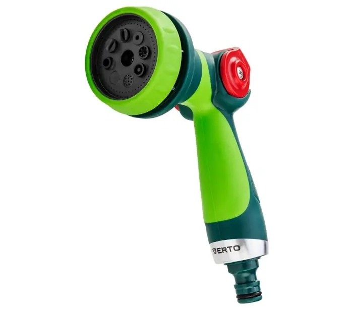 Pistol de duza pentru controlul debitului fara trepte cu 8 modele, 15G704 VERTO este o duza de furtun la indemana si convenabila pentru udarea gazonului, paturi de flori, gradini sau parcele de culturi. Acest pistol cu ??duza multifunctionala ofera control continuu al debitului de apa si multe modele de udare pentru comutarea mai usoara intre diferitele tipuri de plante care trebuie udate. Debitul poate fi controlat cu o singura miscare rapida a degetului mare.