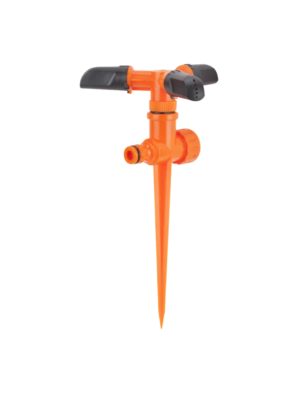Aspersorul Rotativ cu 3 Brate Pivot ETSeste realizat din material plastic rezistent la distrugere (ABS). Acesta permite stropirea suprafetelor de pana la 191 m2 la o presiune de lucru cuprinsa intre 2-4 bar, avand o raza de stropire de 7.8 m si un debit maxim de 26 L/min.Constructia in forma de tija ii permite plasarea usoara in gazon fara a il deteriora.Este echipat cu cupla rapida pentru racordare, dar si cu filet exterior de 3/4″ pentru continuarea liniei de irigare.