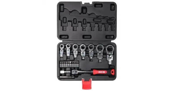 Setul de chei unghiulare cu clichet DEDRA 17L5001 este un set de unelte care va fi util atât într-un atelier profesional, cât și în atelierul unui bricolaj sau al unei gospodării obișnuite. Cheile și biții incluse în set, realizate din materiale cu rezistență sporită și rezistență la coroziune, vor supraviețui chiar și celor mai dure condiții de lucru, ceea ce asigură utilizarea lor pe termen lung, menținându-se în stare excelentă. Multitudinea de componente – capete de chei interschimbabile, biți, extensii – oferă o gamă largă de aplicații, iar cutia în care este inclus setul face ca uneltele să fie întotdeauna bine organizate și ușor accesibile în timpul lucrului. Mânerul cu clichet a fost proiectat cu gândul la confort. Construcția sa din două materiale nu numai că este durabilă, dar oferă și o prindere confortabilă, ceea ce facilitează lucrul cu el, chiar și în poziții dificile. Setul este format dintr-o geantă de transport cu douăzeci de articole incluse. Caracteristici ale cheilor unghiulare cu clichet 17L500: