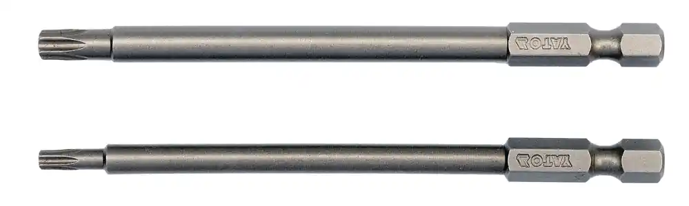 Pachetul contine doua varfuri Torx: T15 si T27, fiecare de 100mm lungime, intr-un ambalaj practic pentru depozitare.